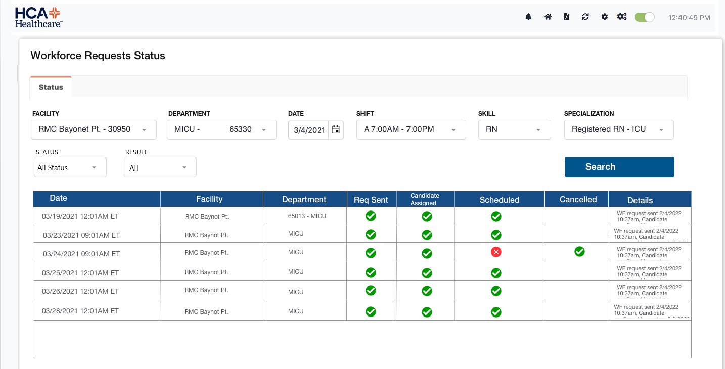 Workforce Requests Status Screen